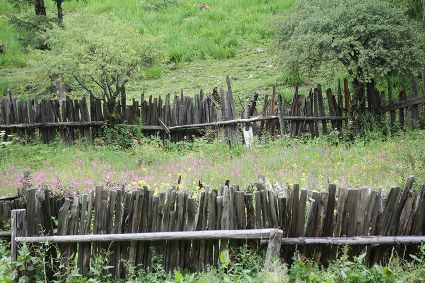 隨著海拔高度的升高與緯度的增加,一路上的植被類型也在不斷發(fā)生著變化。穿越深闊的暗針葉林,六匹馬起起落落的腳力踩出了一個馬幫的回音,所有的植物在各自的生命活動中散發(fā)出了清新怡人的芬多精,吉美為此小聲哼唱起了愉悅的歌兒,細聽卻又像是兩只云雀在不遠處鳴囀。再往上走,周遭的林木又轉(zhuǎn)換成了密致的高山杜鵑林,無數(shù)修長的木流蘇垂掛在樹枝上,像哈達。一路沉默的南杰轉(zhuǎn)頭來開始與我說話“六月間,這里的每一棵樹都開滿了粉白的花朵,一樹樹的煞是壯觀好看,我一個人經(jīng)過,總能聽到一朵、兩朵花鈍落的聲音。最初,我以為是馬雞飛落了,輕聲走入林中打探,身后又會落下一朵、兩朵花,那聲音厚重沉實,林中又過于安靜,我就慌忙走出了林子......”南杰說話聲音秀氣,我聽得時斷時續(xù),過風吹送著南杰話語中杜鵑花的香氣。前路逐漸敞亮起來的時候,路邊的杜鵑樹開始變得稀稀落落了,只見路旁堆壘著高高低低的新鮮柴垛。再往上就沒有樹木了,只有矮腳盤香和淺草,路邊的山包上緊貼著密密麻麻的貌似多肉植物的草葉,從草心抽出來一枝枝薔薇紅的花柱在風中頻頻點頭。雍貝在前方的馬匹上頭低得越來越沉,以為他瞌睡,我喊了聲貝,他回頭看我,面色灰白嘴唇有些發(fā)紫。南杰回望我們后一躍下馬,從路邊的淺草中折斷幾根盤香枝別在雍貝的耳際,說是可以抵御高反。剩余的兩根遞給我,細小的枝葉上積著一層薄薄地灰色粉塵,深嗅有松脂的清香氣味,安人心神。