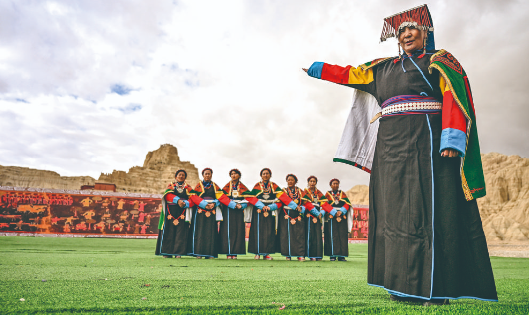 “宣舞”起源于札達(dá)縣,是西藏阿里民間傳統(tǒng)舞蹈?!靶琛比诤喜貞?、舞蹈、說(shuō)唱等主要的藏民族民間藝術(shù),內(nèi)容涵蓋藏民族宗教、禮儀、風(fēng)俗、節(jié)慶等各方面的內(nèi)容。2008年,“宣舞”入選第二批國(guó)家級(jí)非物質(zhì)文化遺產(chǎn)名錄。