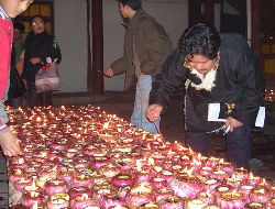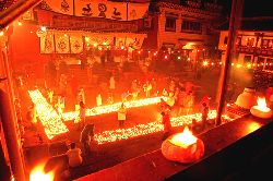 傳說藏歷十月二十五日,是藏傳佛教格魯巴(俗稱黃教)創(chuàng)始人宗喀巴大師圓寂成佛的日子。為了紀念這位杰出的宗教領(lǐng)袖,藏區(qū)各黃教寺廟和信徒于藏歷十月二十五日,舉行誦經(jīng)、磕頭,燈供儀式等隆重的祭祀活動,祭祀宗喀巴大師在天之靈和祈愿大師賜與善良的人們以吉祥幸福。