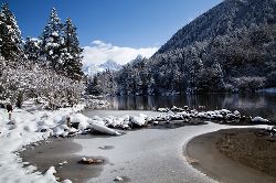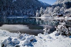 進(jìn)入木格措的冬天就是進(jìn)入了一片美麗的冰雪天地,然而在這里,除了冰雪,還有陽光、沙灘、藍(lán)天處處充滿著浪漫的氣息。早晨,當(dāng)你站在海拔3780米的木格措海子觀景臺(tái)前,閉上眼睛細(xì)細(xì)品味雪山后暖暖陽光照射在身上的感覺;工作、生活、煩惱……一切拋在腦后!在景區(qū)的樹上到處是漂亮的冰掛,讓人仿佛一下子進(jìn)入純潔晶瑩的人間仙境;在海子旁自然形成的一大片名為黃金海岸的沙灘,更是給來到這里的人們帶來情海的感受。