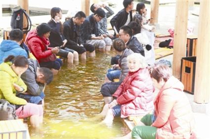 游客攪熱海螺溝。