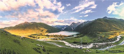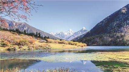 一天之中,數(shù)清晨和傍晚的海子最美,晨光中,湖水猶如鏡面般倒映著周圍的景物,天色漸漸亮了,周圍的景物也在 “鏡子”中漸漸清晰起來(lái),特別是那些雪山下的海子,當(dāng)太陽(yáng)給雪山鍍上一層玫瑰金,倒影更美。傍晚,落日的余暉灑在海子和它周圍的景物上,又是另一種美,天上再有幾縷晚霞,更絕。四季里,就要看秋天的海子,因?yàn)檫@時(shí)海子周圍的景色是最美的,紅葉、黃葉、綠葉相間,便襯托得海子更美。