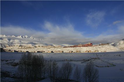 記得,離開甘孜縣城,前往滿金寺的那個早晨。同行的幾個人早早用過了早飯,趁著出發(fā)前僅有的一點時間,站在頂樓視野開闊的餐廳里,盼著太陽沖出來,直接把陽光大把大把地扔在大雪所覆蓋的一切事物上。天公作美,出發(fā)之前,太陽慷慨了一回。于是,一陣噼噼啪啪的快門聲響了起來,應和著寥寥餐廳里的某種空白。