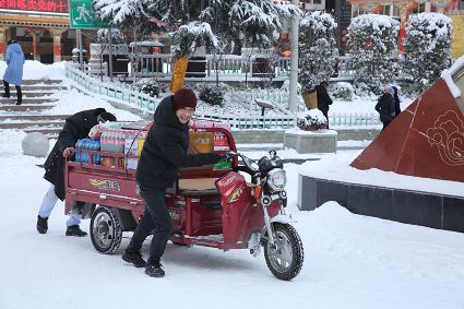“風(fēng)雨送春歸,飛雪迎春到。已是懸崖百丈冰,猶有花枝俏?!?月4日傍晚,大片大片的雪花,從昏暗的天空中紛紛揚(yáng)揚(yáng)飄落下來(lái)。霎時(shí)間,山川、河流、城市,全都籠罩在白蒙蒙的大雪之中。黃昏的雪,下得深切切的,好象有千絲萬(wàn)縷的情緒似的,又像海水一般洶涌,能夠淹沒(méi)一切,還有一絲揭開(kāi)藏頭露尾般的裸露感。雪花形態(tài)萬(wàn)千、晶瑩透亮,好象出征的戰(zhàn)士,披著銀色的盔甲,又像是一片片白色的戰(zhàn)帆在遠(yuǎn)航…… 落光了葉子的柳樹(shù)上,掛滿了毛茸茸、亮晶晶的銀條兒;冬夏常青的松樹(shù)和柏樹(shù),堆滿了蓬松松、沉甸甸的雪球。那一片雪花在空中舞動(dòng)著各種姿勢(shì),或飛翔,或盤旋,或直直地快速墜落,鋪落在地上?!昂鋈缫灰勾猴L(fēng)來(lái),千樹(shù)萬(wàn)樹(shù)梨花開(kāi)”——這是雪的燦爛;一場(chǎng)瑞雪,扮美了康定,年味籠罩的康定城,嫵媚妖嬈。無(wú)論是背水姑娘、有著年味兒的將軍橋,還是大紅燈籠高高掛的康定門,都在雪后別有一番景致。與美景合影、和朋友玩雪都是最佳選擇。在風(fēng)雪中,交警不畏嚴(yán)寒默默堅(jiān)守崗位 ,指揮交通疏堵保暢。他們的身影在皚皚風(fēng)雪路上站成一道道最美的風(fēng)景,溫暖了康定。從早上六點(diǎn)開(kāi)始,康定的環(huán)衛(wèi)工就迎著刺骨的寒風(fēng),開(kāi)始了除冰雪保通暢的行動(dòng),在積雪覆蓋的康定城,早起的商販樂(lè)呵呵地做起了買賣;民工迎著雪后的寒風(fēng)出門務(wù)工,他們是最可敬的人。