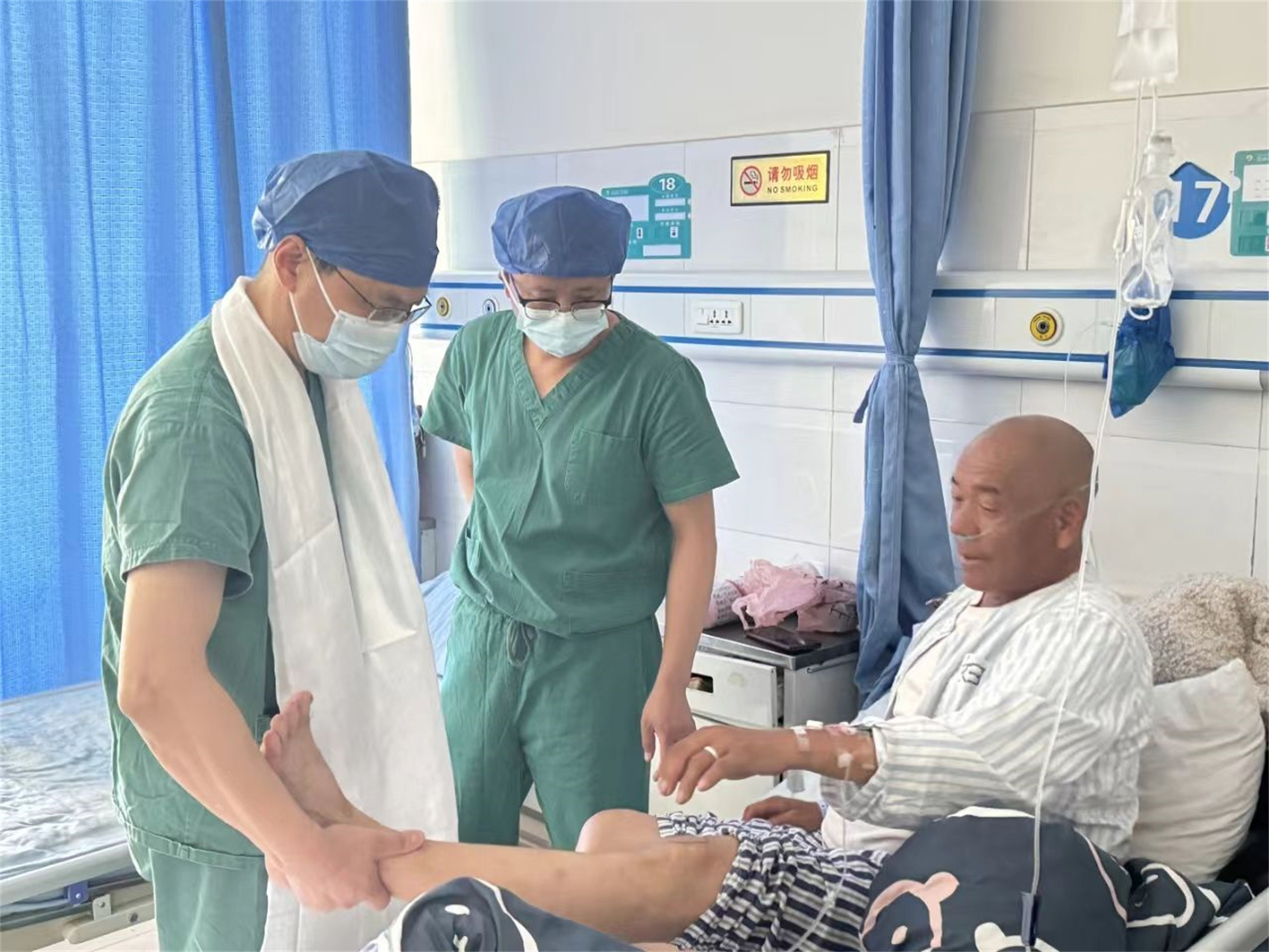 病房里和李秀文同樣幸運(yùn)的還有60歲的拉空登巴大叔,登巴大叔被膝關(guān)節(jié)疼痛困擾多年,雙腿膝關(guān)節(jié)變形,上下樓梯時(shí)痛感會更加明顯。當(dāng)天一大早,登巴大叔就從家里趕到縣醫(yī)院,做術(shù)前準(zhǔn)備?!昂荛_心,我滿足了手術(shù)條件,希望手術(shù)順順利利!”登巴大叔激動(dòng)地說。
