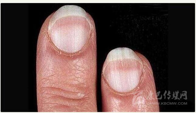 辨顏色。健康人的指甲一般是粉紅,有一定光澤且均勻。不少人把較白的指甲看做貧血征兆,但要對癥分析。如指甲發(fā)紫是動脈硬化、血脂高,或心臟滯阻的前兆;指甲發(fā)青,則為重寒癥,血瘀;指甲發(fā)黃可能肝膽有問題,或血糖代謝不暢;還有一種指甲發(fā)藍,顯示肺部受阻。
