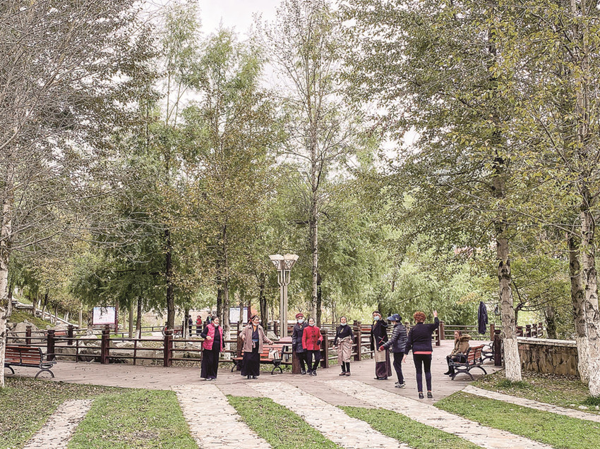 圖為老人們在情歌公園跳廣場舞。記者 格桑土登 攝