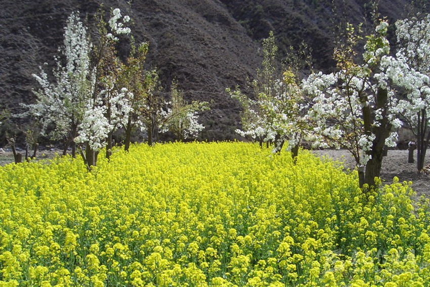 試想遠(yuǎn)處的雪山白雪皚皚,身旁有粉紅的桃花、雪白的梨花、金黃的油菜花,絢麗斑斕,光彩奪目,有春天的生機(jī)和活力,多了一種靈氣和不落塵埃的灑脫。賞花累了,沐浴在海螺溝的溫泉里,身體宛如畫(huà)龍點(diǎn)睛漂浮的暖云,能深切感受到來(lái)自海螺溝冰川地底的熱力。心境或怡然自得,或超脫塵世,或?qū)庫(kù)o澄明,或天人合一。春天里的海螺溝是花的海洋,是春的世界,是人間的仙境。