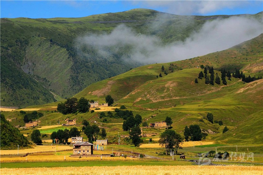 秋季的新都橋是如詩如畫的世外桃源。神奇的光線,無垠的草原,彎彎的小溪,金黃的柏楊,連綿起伏的山巒,錯落有致的藏寨,星星點點的牛羊……是令人神往的“光與影的世界”、“攝影家的天堂”。