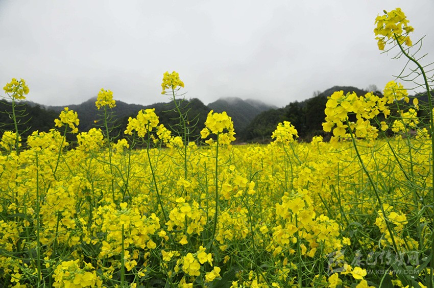 春天剛起頭是油菜花開(kāi)得最繁的時(shí)節(jié),金黃色的油菜花大大咧咧地?cái)D滿了山坡。她的美麗,不必華美的詞藻,簡(jiǎn)簡(jiǎn)單單地鋪在山野上,倒更像是頂頭的白云一般,天真無(wú)邪。油菜花漫漫地在田間野里站成一道道風(fēng)景,山腳山腰,都是一幅極美極佳的畫(huà)。猜猜這是哪里?原來(lái),這里是川西高原上的瀘定城,一個(gè)因?yàn)椤帮w奪瀘定橋”而著名的城市,一個(gè)紅色旅游、英雄的故鄉(xiāng)。