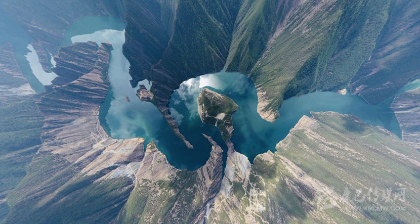 天龍湖是一個向上的世界,這世界被山水抬舉。記者從最佳視角——位于峽谷核心區(qū)普巴絨鄉(xiāng)比貢寺所在的山脊俯瞰,“九曲回腸”的一灣灣碧水在瘦削相對的青山之間,串連似珠玉,蘊(yùn)翠含黛、峻峭生姿。