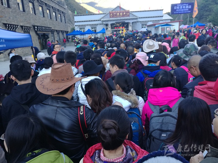 亞丁景區(qū)門票站游人如織。本網(wǎng)資料庫 圖
