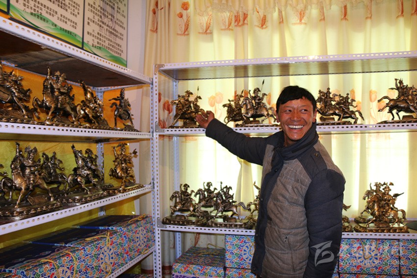 “東讓燃谷”藏文化傳統(tǒng)手工藝品制作合作社泥塑師白瑪俄日說,在精準(zhǔn)脫貧中,茶扎鄉(xiāng)通過傳承格薩爾文化手工藝,研發(fā)了具有格薩爾文化元素的文化產(chǎn)品。