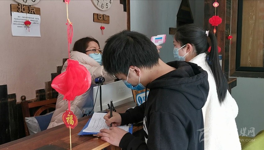 游客在填寫個(gè)人健康信息。