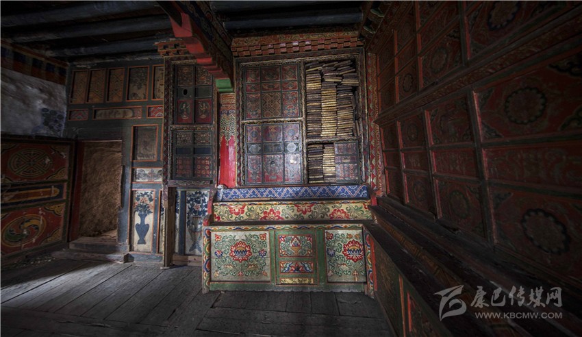 大廳右手邊是薩迦教派的經(jīng)堂,經(jīng)堂內(nèi)的雕刻藝術(shù)造型逼真精工細雕,十分考究,具有極高的藝術(shù)欣賞價值。自麥經(jīng)堂整體建筑風(fēng)格既有稻壩古老建筑風(fēng)格,又有皇家建筑風(fēng)格。墻體上繪有白塔和佛像等藏式壁畫,具有較高的歷史、文化和科研價值,是一座具有深厚歷史底蘊的宗教文化藝術(shù)殿堂。