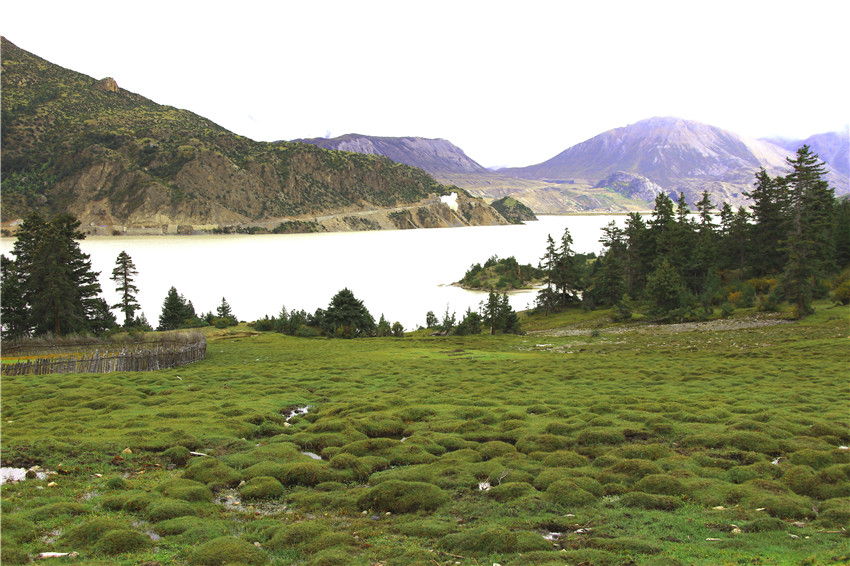 我一直走到村莊的盡頭,那里又是然烏湖的水域,湖邊有很多鵝卵石。我問(wèn)了好些人才弄清“然烏”一詞的漢語(yǔ)的大意: “許多尸體堆積在一起”。據(jù)說(shuō)這里曾是藏東南有名的水葬場(chǎng),這也是它有名的另一個(gè)原因。歸去來(lái)兮,生死輪回,最后在這里仰望雪山草地,干干凈凈,一身清白,等候踏上去天堂的路。水葬是藏族古老習(xí)俗中三種殯葬方式中的一種,佛家講布施,天葬和水葬都含有布施的意義。藏民不吃魚也多是源于此。