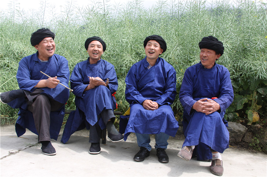 說到這里,四個人臉上都露出憂郁的眼神:“現(xiàn)在的娃娃們只喜歡唱流行歌曲,偶爾有幾個會唱的,也只是一知半解,有可能‘十二杯子酒’酒歌在我們手上就要斷了路,真的希望更多的娃娃來學(xué)這首歌,所以我們要不斷地唱、不斷的感染他們,讓他們曉得老祖宗的東西不能丟,不能忘。酒歌不傳承給他們也只能爛在我們的肚子里面了?!?/p>