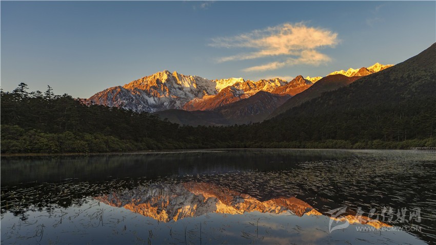 窗外,飄散的雨珠無(wú)邊無(wú)際地紛飛,抬頭仰望深邃的夜空,不禁思想起飛機(jī)抵達(dá)甘孜的那一刻——舷窗外,云層如棉絮般靜語(yǔ)緩流,遙遠(yuǎn)的云端盡頭,陡然出現(xiàn)了一座壁立千仞、直插云霄的巨大錐形山峰,其上覆蓋著潔白冰雪,反射著金色的陽(yáng)光……