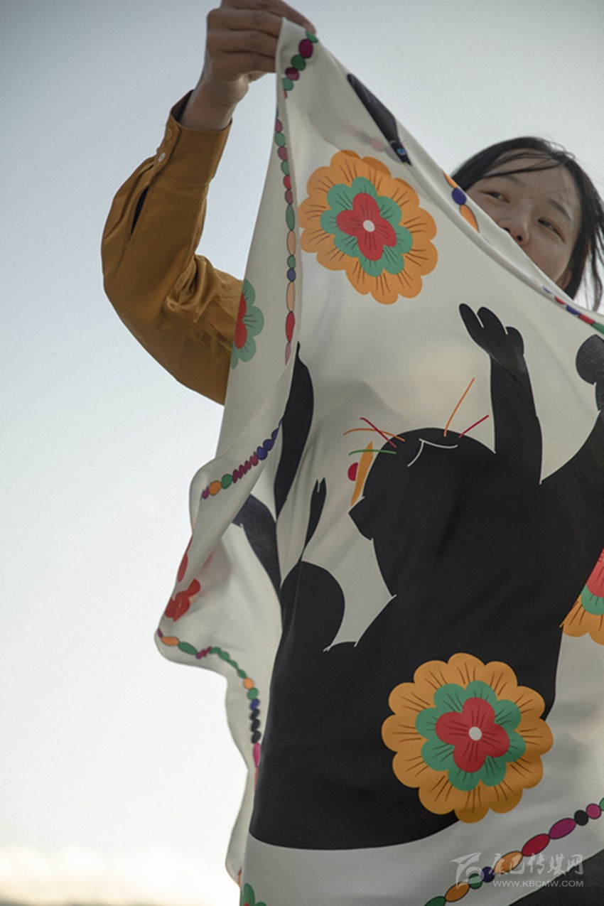 從醞釀、構(gòu)思、調(diào)研到創(chuàng)作、修改、打版,整整半年時間,殷九龍同設(shè)計團隊深入藏鄉(xiāng)田園鄉(xiāng)城的村村寨寨,數(shù)十次敲開農(nóng)牧民群眾的白藏房,遍訪家家戶戶的廚房灶臺,搜羅鄉(xiāng)城與貓的不解之緣,收集當(dāng)?shù)亍柏垺钡母黝愋蜗?,同時積累所到之處建筑家具、生產(chǎn)資料、生活物資的材質(zhì)、圖案及用色。