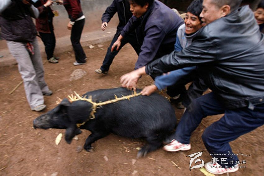割豬蹄給娃娃們拿到山上玩。大人陪他們燃起篝火,指揮他們將豬蹄不分你我地拋進火中燒熟后,你一塊,我一坨地掏來吃,以養(yǎng)成團結友愛的道德風尚。