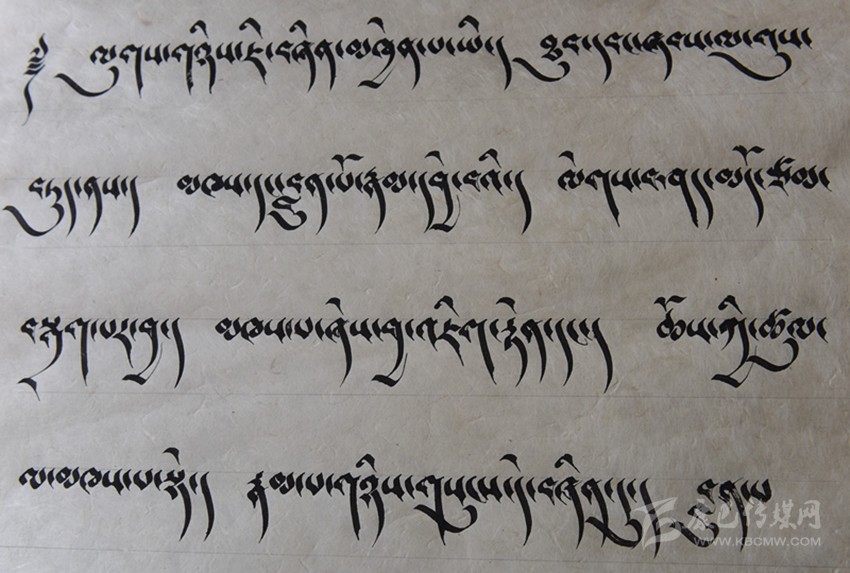 談到藏文書法作品,昂旺曲批喜歡用諸如“淳樸、干凈、善良”的字眼形容藏文書法作品的風格?!耙粋€字就是一個人,字有肉也有骨頭?!边@是昂旺曲批對“德珍派”書法的理解,在昂旺曲批眼中,藏文字都是有生命的,需要寧心靜氣方能通過手中的筆尖,彼此呼應(yīng)。