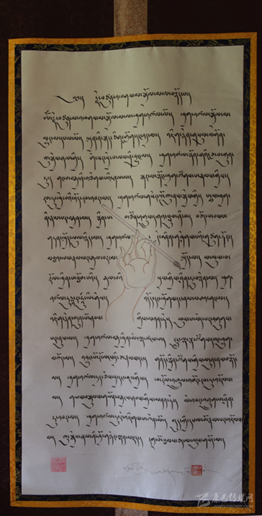 他引用一句諺語來表達:“水那邊的干牛糞沒撿到,水這邊的濕牛糞也沒有見撿到。” 在昂旺曲批看來,靜心是藏文化非常重要的精神傳統(tǒng),這也是藏文書法和唐卡立身的根基。而昂旺曲批記住這句諺語,無非是隨時提醒和勉勵自己。