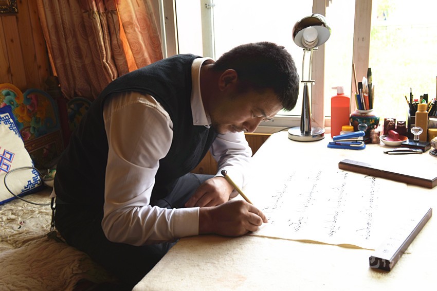 “德珍書法原本就是集歷史上藏文書法大師作品精華而成?!边@些年,昂旺曲批呆在理塘,潛心研究當代各個藏文流派名家的書法作品,同時和內(nèi)地的漢字書法名家保持著聯(lián)系。他希望自己沿著“集眾家所長,兼收并蓄”的精神傳統(tǒng),把“德珍派”藏文書法的傳統(tǒng)發(fā)揚廣大,同時能有所創(chuàng)新。