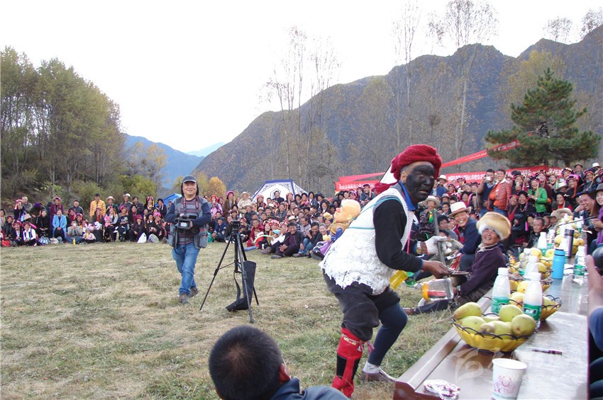 其實(shí),對于這種畫臉的劇種,我以為,它最初應(yīng)該來源于地頭文化,古時候的嘉絨農(nóng)村,文化生活異常貧乏,在歷史的長河中,原住民主要依靠放牧及種地為生,在一起勞作時,男人和女人之間常常會開一些的玩笑,一般無所避諱。