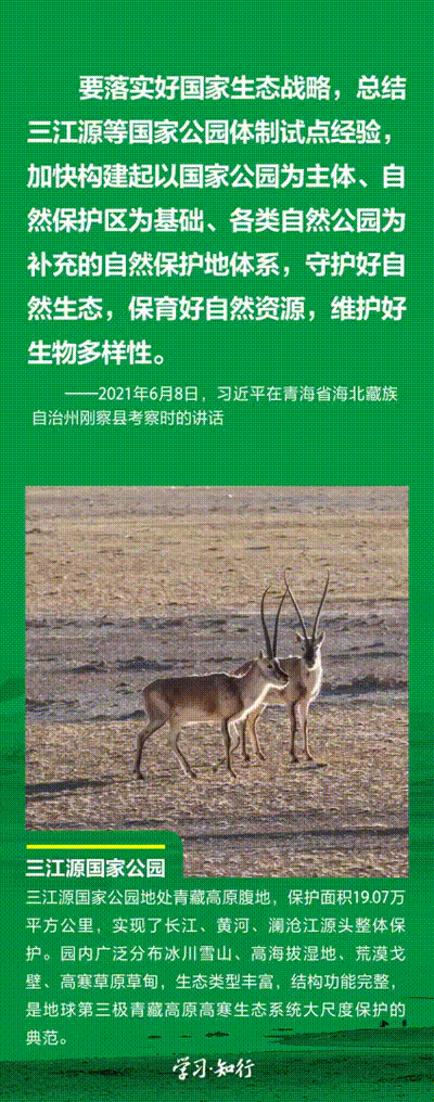 “生物多樣性使地球充滿生機,也是人類生存和發(fā)展的基礎?!蓖七M以國家公園為主體的自然保護地體系建設,是習近平總書記作出的重要部署。三江源、大熊貓、東北虎豹、海南熱帶雨林、武夷山等首批國家公園正式設立以來,生態(tài)功能持續(xù)向好,對保護生物多樣性、推進人與自然和諧共生的現(xiàn)代化具有重要意義。