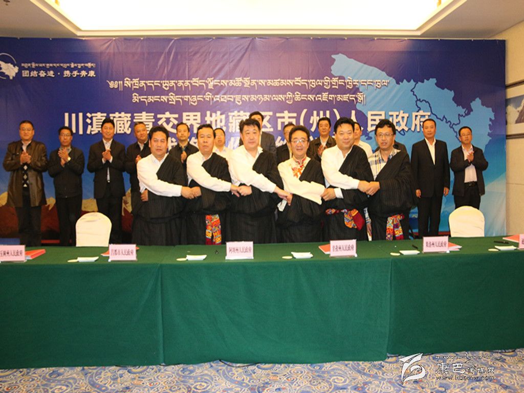 隨著川滇藏青交界地藏區(qū)市(州)長(zhǎng)聯(lián)席會(huì)議制度的建立,交界地藏區(qū)的合作由過去“點(diǎn)對(duì)點(diǎn)”的雙邊合作上升為“抱成團(tuán)”的多邊合作。圖為簽約儀式現(xiàn)場(chǎng)。