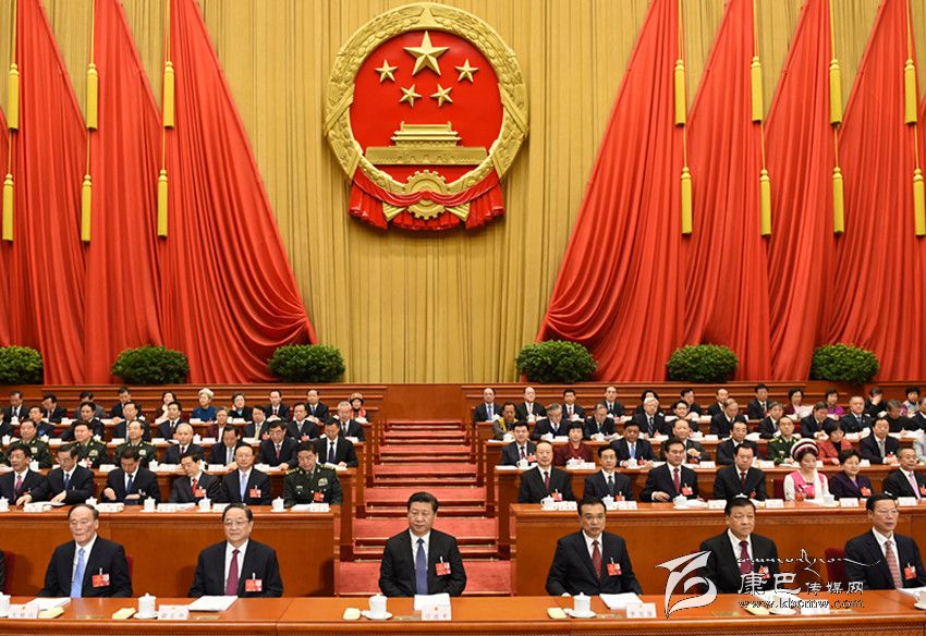 習(xí)近平、李克強(qiáng)、俞正聲、劉云山、王岐山、張高麗和大會主席團(tuán)成員在主席臺就座。