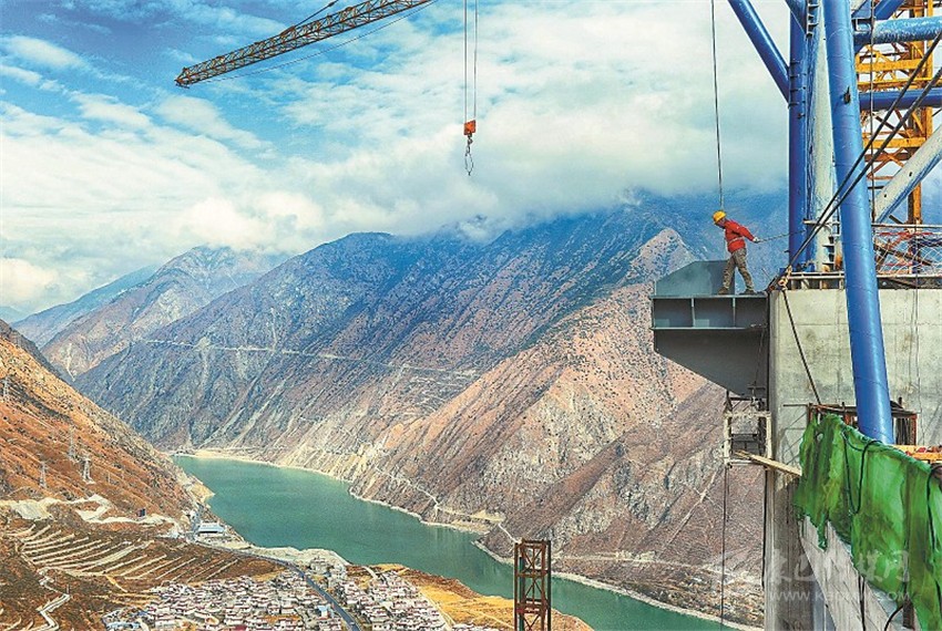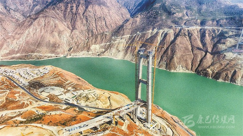瀘定大渡河興康特大橋是雅康高速公路的重點控制性工程之一,是一座建在高海拔、高地震烈度帶上的超大跨徑鋼桁梁懸索橋,采用鋼混疊合橋道系,造價超過10億元,因建設(shè)技術(shù)難度大被譽為“川藏第一橋”。兩岸主墩索塔高188米,塔頂至河面垂直高差364米,橋橫跨大渡河,但在河中沒有橋墩,采取的是懸索橋設(shè)計,在兩岸修建兩塔、兩錨,作為支撐和受力,橋面以懸索拉伸。未來,大橋?qū)⒁?/span>1100米的超長跨徑連通大渡河兩岸,變天塹為通途。 (何海洋 攝影報道)