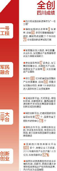 新變化源自新機(jī)遇。2015年8月,四川等8個(gè)區(qū)域被確定為國(guó)家系統(tǒng)推進(jìn)全面創(chuàng)新改革試驗(yàn)區(qū)。全面創(chuàng)新改革試驗(yàn),是改革開放近40年來中央交給四川最重要的改革任務(wù),作為引領(lǐng)發(fā)展的“一號(hào)工程”,一年多來,四川已在軍民融合、科技成果轉(zhuǎn)化、人才培養(yǎng)、金融服務(wù)等多個(gè)領(lǐng)域大膽創(chuàng)新,亮點(diǎn)頻現(xiàn)。