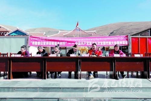 從康東到康北再到康南,處處是“州委群眾宣講團(tuán)和諧鄉(xiāng)村行”——中國(guó)共產(chǎn)黨第十九次全國(guó)代表大會(huì)精神宣講團(tuán)成員的身影。石渠、德格、白玉、稻城、得榮、鄉(xiāng)城、理塘、道孚、瀘定、康定……州委群眾宣講團(tuán)在各地的宣講會(huì)座無(wú)虛席,農(nóng)牧民群眾和寺廟僧尼聚精會(huì)神聆聽(tīng),認(rèn)真做筆記。州委群眾宣講團(tuán)“廣泛講”取得良好效果。