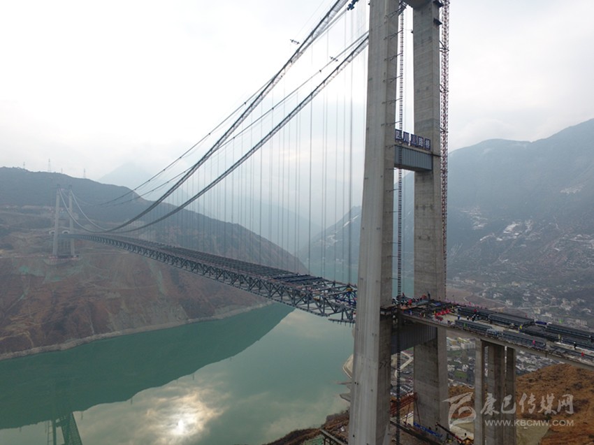 本網(wǎng)訊(余秋林 張皓瑜 記者 肖宵 文/圖)2月6日早上,冬陽透過薄霧灑落在大渡河面,在瀘定縣瀘定橋上游5公里處,兩座橋墩直入云端,由鋼桁梁組成的巨大“龍骨”凌空橫跨河面,這項(xiàng)雅康高速公路的“超級(jí)工程”即將迎來蛻變。