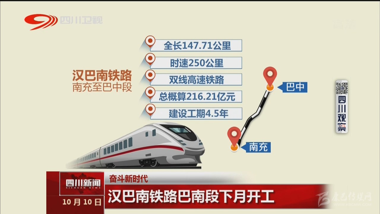 近日,省發(fā)改委對新建漢巴南鐵路南充至巴中段初步設(shè)計進行了批復(fù)。項目正線全長147.71公里,時速250公里,為雙線高速鐵路,總概算為216.21億元,建設(shè)工期4年半,由省鐵投集團公司和南充市、巴中市人民政府共同籌資建設(shè)。項目預(yù)計11月底全線開工建設(shè),到2024年建成通車后,巴中至南充最短運行時間約為35分鐘,待成南達萬鐵路建成投運后,巴中至成都運行時間可縮短至75分鐘左右。