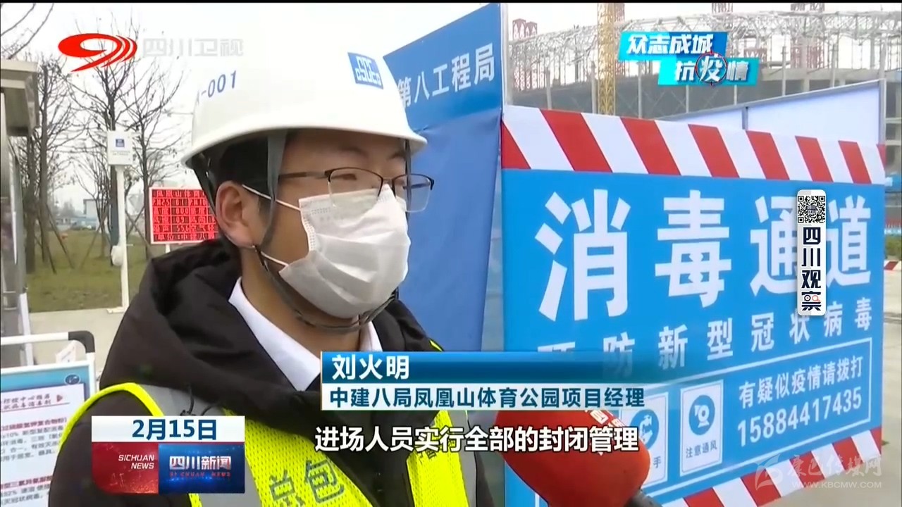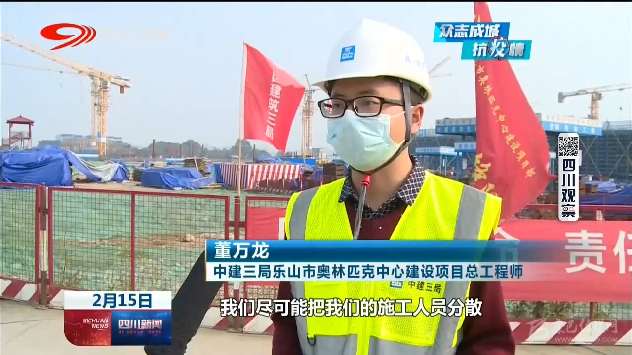 中建三局樂山市奧林匹克中心建設(shè)項(xiàng)目總工程師 董萬龍:“我們盡可能把我們的施工人員分散,不要聚集,對內(nèi)我們做好防控物資的保障,口罩、消毒水以及酒精這些防疫物資已經(jīng)齊全。”