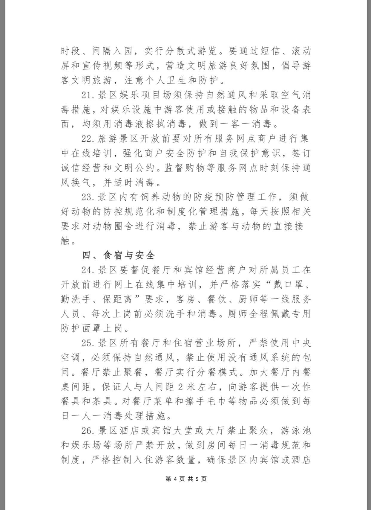 為保障景區(qū)安全有序恢復(fù)開(kāi)放,景區(qū)游客服務(wù)中心和(志愿者或商業(yè))服務(wù)網(wǎng)點(diǎn)除放置免費(fèi)中英文防治新冠肺炎的宣傳資料外,還要放置“本中心已消毒”告示,應(yīng)備有75%的酒精棉球或其它消毒液等免費(fèi)供游客使用。同時(shí),景區(qū)內(nèi)所有交通工具駕乘人員都必須佩戴防護(hù)口罩,采取隔位就坐的方式控制乘坐人數(shù),確保游客之間的有效間距,而垃圾箱(桶)則實(shí)行“一日兩清理兩消毒”制度,增設(shè)廢棄口罩回收專(zhuān)用箱(桶)。
