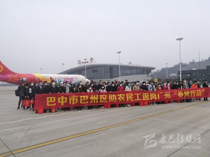 2月26日,巴中恩陽機場首班農(nóng)民工返崗包機飛赴廣州。