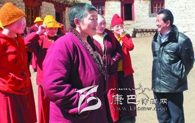 在雅江縣委、縣人大常委會主要領(lǐng)導(dǎo)及統(tǒng)戰(zhàn)、宗教部門的陪同下,李康來到距縣城90多公里的雅江縣紅龍鄉(xiāng)158k覺姆寺,同寺管會成員和部分僧尼進(jìn)行座談。他詳細(xì)了解寺廟的基本情況,仔細(xì)詢問僧尼的生產(chǎn)生活和寺廟佛事活動開展情況,認(rèn)真傾聽僧尼的反映和訴求,對僧尼提出的困難和問題詳細(xì)記錄,認(rèn)真答復(fù),耐心細(xì)致地講解宣傳黨的民族宗教和惠寺惠僧政策。座談會上,李康主任簡短的開場白很快拉近了大家的距離,他說,這次專門到寺廟的目的就是看望大家,建立聯(lián)系,了解情況,收集問題,希望大家暢所欲言,互相溝通,加強交流,增進(jìn)了解,共同推進(jìn)寺廟的健康有序發(fā)展。當(dāng)他了解到該寺的水、電問題在縣委、政府的關(guān)心重視下,今年即將得到解決時,他說,州、縣黨委、政府歷來十分關(guān)心寺廟的基礎(chǔ)設(shè)施建設(shè)和廣大僧尼的生產(chǎn)生活、健康醫(yī)療等問題,寺廟的水電、道路、通信等基礎(chǔ)設(shè)施始終得到了黨委、政府的關(guān)心支持,僧尼的醫(yī)保、養(yǎng)老和最低生活保障等生活保障措施正在全州寺廟全面覆蓋。對寺廟的其他困難和問題,州、縣將積極協(xié)調(diào),盡快解決。他強調(diào)指出,158k覺姆寺近年來通過縣委、政府綜合施策,強化教育,規(guī)范管理,寺廟整體情況良好,步入了依法管理的良性軌道。他講到,我們黨的民族宗教政策是長期的、一貫的,寺廟作為基本社會單元,僧尼作為普通公民和基本群眾,要自覺接受當(dāng)?shù)攸h委、政府依法管理,維護(hù)祖國統(tǒng)一、民族團(tuán)結(jié)和法制尊嚴(yán),推動宗教與社會主義社會相適應(yīng),與現(xiàn)代文明進(jìn)程相協(xié)調(diào),積極投入全州發(fā)展中來,共同建設(shè)好我們的和諧幸福家園。任何寺廟只要服從當(dāng)?shù)攸h委、政府的管理,認(rèn)真貫徹落實好藏傳佛教的各項管理規(guī)定,真正發(fā)揮好宗教的正面積極作用,寺廟才會得到黨委、政府更多的關(guān)心支持,才會得到更好的健康發(fā)展。他希望158k覺姆寺要依法加強宗教事務(wù)的管理,深入貫徹落實《甘孜州藏傳佛教事務(wù)條例實施細(xì)則》,促進(jìn)依法治寺、規(guī)范管寺,為維護(hù)正常宗教秩序、服務(wù)經(jīng)濟(jì)社會發(fā)展、促進(jìn)社會和諧穩(wěn)定做出積極貢獻(xiàn)。