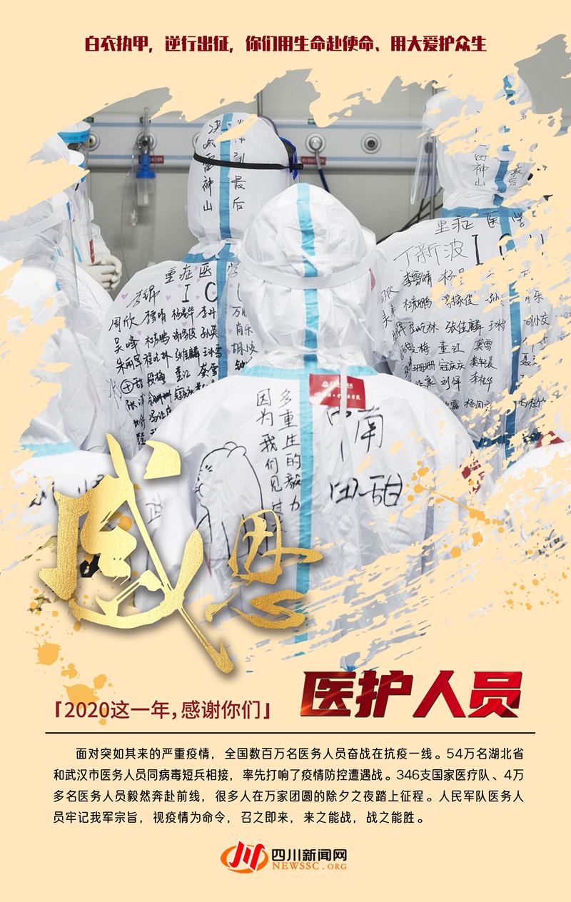 這一年,是充滿感動的一年,這一年,是無數(shù)人不計付出守護平安的一年,這一年,我們感恩這些人,感謝英雄的你們,鑄就了“生命至上、舉國同心、舍生忘死、尊重科學、命運與共”的抗疫豐碑。