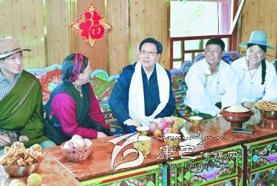 5月21日,省委書記王東明到道孚縣八美鎮(zhèn)雀爾村調(diào)研旅游新村建設(shè)情況。在藏族村民仁真翁姆家中,王東明親切地與她拉起家常,仔細(xì)詢問就業(yè)、收入等情況。 川報記者 毛漫丁 攝