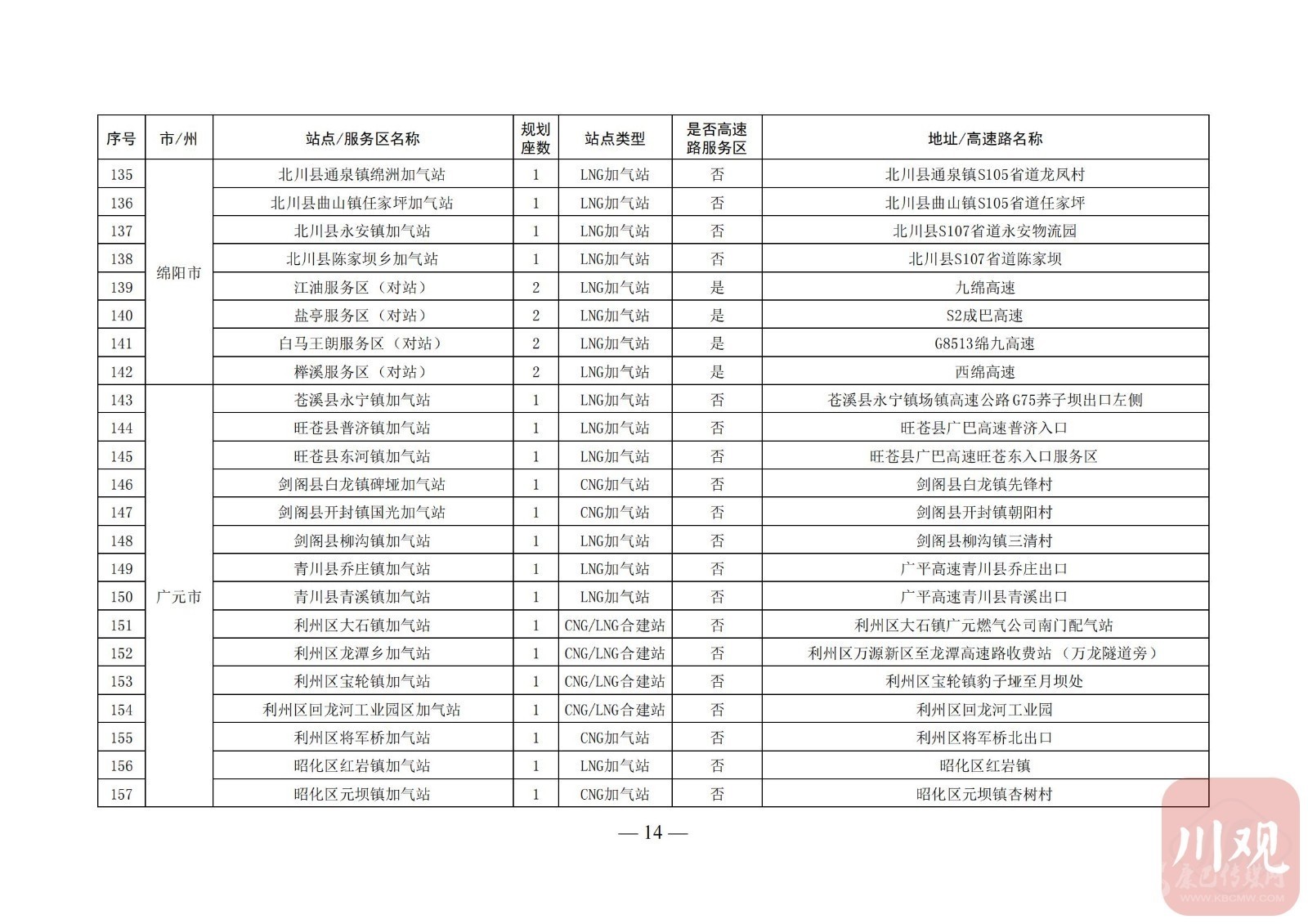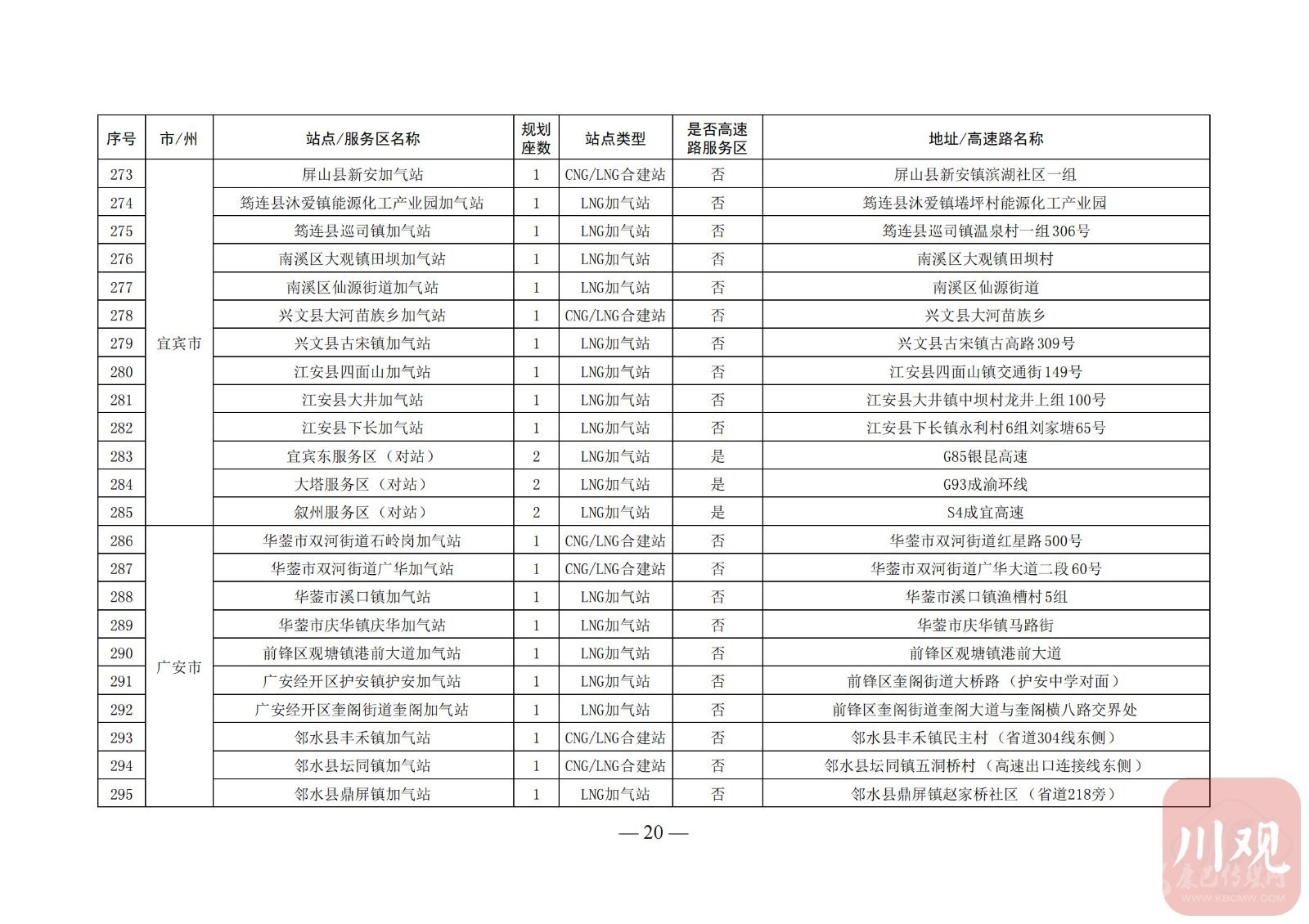附:四川省天然氣汽車加氣站布局表
