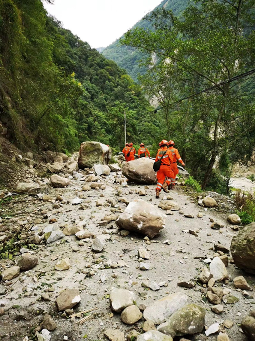 安全撤離前,一位指揮人員反復要求我們要清理人員,不能漏掉一人。到了幾百米外的燈桿坪,我們看到救援隊伍時,就看到了生命的希望。一位身穿藍色衣服的人問我是不是最后一個出來的,村子里還有沒有人員,連續(xù)問了我三次。我說沒有了,確實沒有了,請你相信我,因為我是一名黨員。同時,他還問我是不是村上的干部?我說我是原來的支部書記,合并村后,擔任咱地村委會副主任。他說好,我們要馬上撤離,前邊道路垮塌嚴重,巨石斷木阻道,還有近8公里的飛石路段。通過2個多小時,我們被救援隊伍安全護送到隧道口處,并馬上就地組織了車輛有序進行第3次分段轉移。最后,通過5個多小時,救援隊伍把我們全村120余人全部安全護送到指定的安置點。