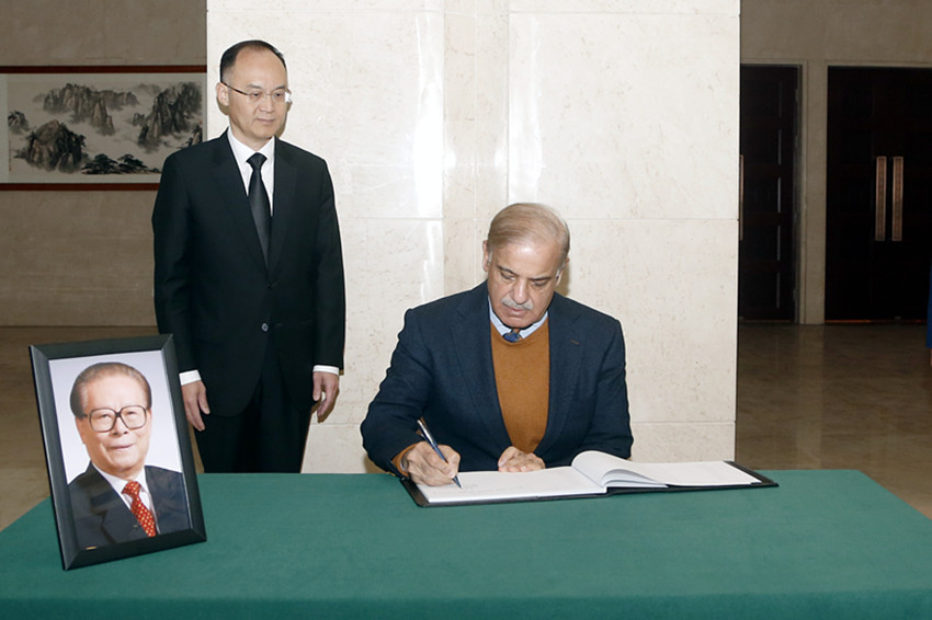 12月1日,巴基斯坦總理夏巴茲在中國(guó)駐巴基斯坦大使館吊唁江澤民同志。 艾哈邁德·卡邁勒 攝(新華社 發(fā))