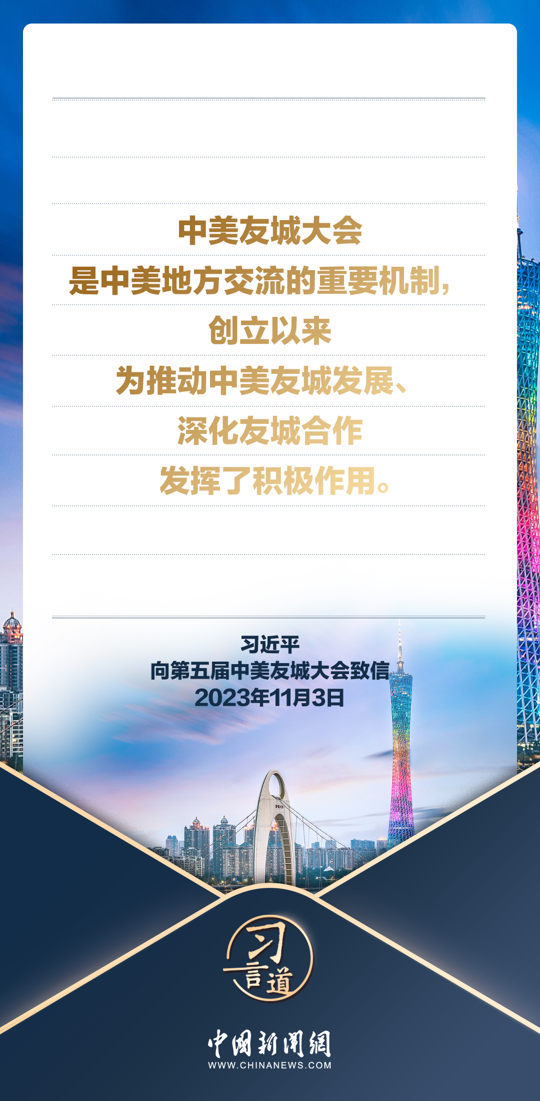 11月3日,國家主席習近平向第五屆中美友城大會致信。習近平指出——