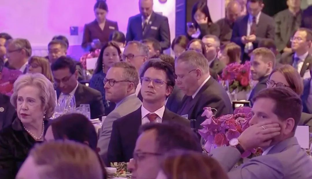 △當?shù)貢r間11月15日晚,習近平主席在美國友好團體聯(lián)合歡迎宴會上發(fā)表演講。圖為參加宴會的人士認真聆聽演講。