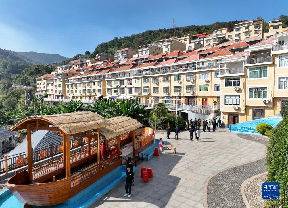 這是2023年11月19日拍攝的福安市下岐村漁民廣場和周邊的樓房(無人機照片)。新華社記者 林善傳 攝