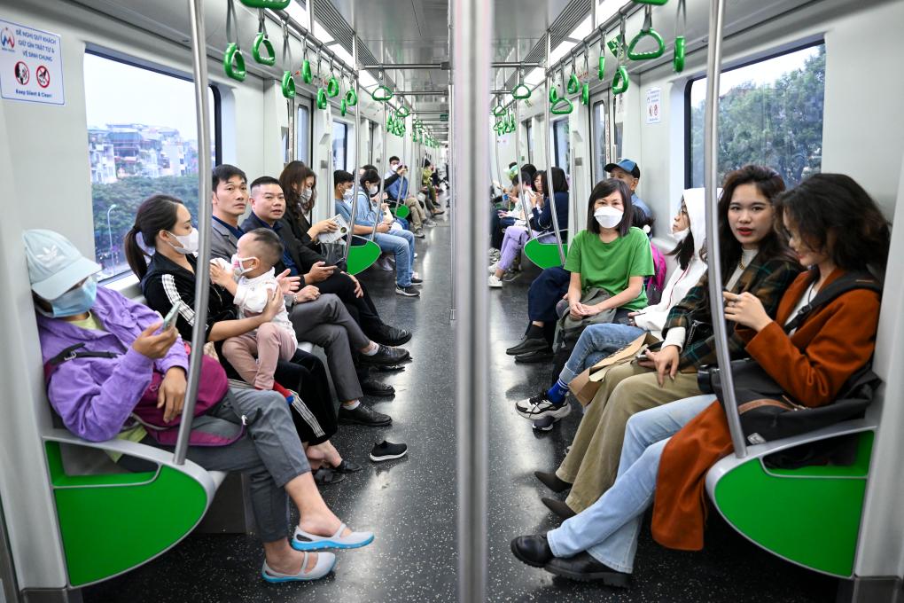 12月9日,人們在越南河內(nèi)乘坐吉靈-河?xùn)|線輕軌。河內(nèi)吉靈-河?xùn)|線輕軌由中國中鐵六局集團有限公司承建,是中越兩國共建“一帶一路”的標(biāo)志性項目。新華社記者程一恒攝