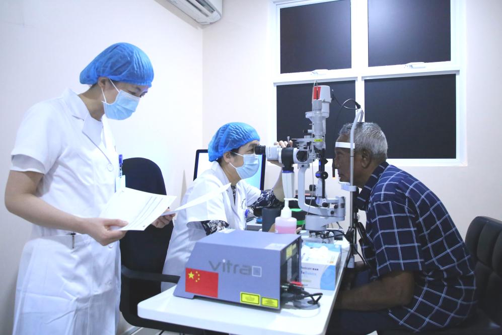 ??69歲的艾哈邁德·卡洛是中國醫(yī)療隊“光明行”活動的獲益者。兩個兒子曾帶著患有眼疾多年的老人輾轉(zhuǎn)多家醫(yī)院,均因手術(shù)難度大而無法得到有效治療。2023年,中國醫(yī)療隊醫(yī)生經(jīng)過充分評估后,給老人成功實施了手術(shù)。術(shù)后揭開眼罩時,老人家激動地說:“醫(yī)生,我可以看到你的胸牌了,謝謝你!”老人的兒子也在社交媒體發(fā)帖說:“真誠感謝中國醫(yī)生。”除了治病,中方還著力培訓(xùn)當?shù)蒯t(yī)務(wù)人員,力爭為當?shù)卮蛟煲恢А皫Р蛔摺钡难劭茖<谊犖椤?/span>